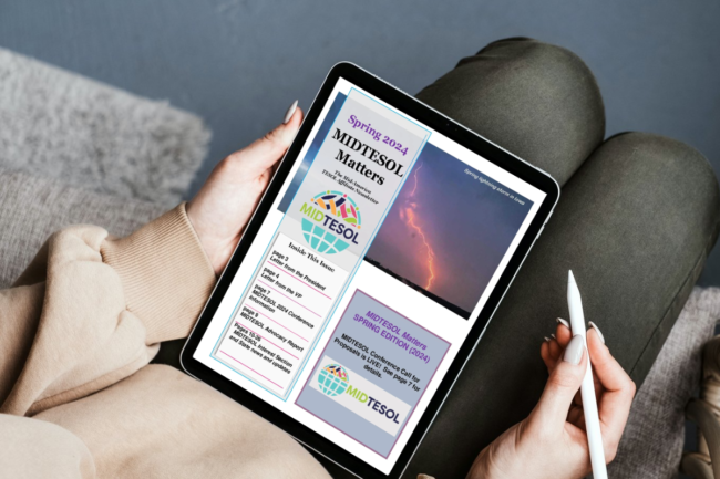 The Spring 2025 issue of MIDTESOL Matters, our affiliate newsletter, is now available. In this issue: Letter from MIDTESOL President Shabina Kavimandan Letter from MIDTESOL Vice President Elissa Jones Introducing the new MIDTESOL Board Members Announcing #MIDTESOL25 Postcards from TESOL 2025 Interest Section News And more! Click here to download this issue. Back issues of MIDTESOL Matters are available here.